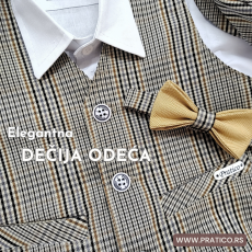 Opis: Karirane pantalone, bež/karamel kaput, karo kačket, bela košulja.Sastav materijala: Kaput (poliester 100%), pantalone, kačket od pamučnog kepera (pamuk 75%, poliester 25%); Košulja (pamuk 100%); Vrhunski komplet za najveće male frajere :)Handmade proizvodnja elegantne dečije odeće!..